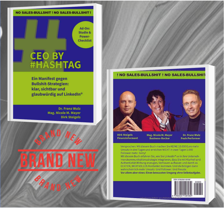Dieses Buch von Dr. Franz Wulz, Mag. Nicole Mayer und Dirk Steigels kein Vertriebsmanual, sondern ein Unternehmerbericht: Was Sichtbarkeit wirklich bedeutet, wie sie entsteht und warum Authentizität die einzige nachhaltige Strategie ist. Es ist eine ehrliche Studie über Unternehmer, die echte Sichtbarkeit schaffen wollen, ohne gekaufte Reichweite, ohne leere Versprechen. Ein Blick hinter die Kulissen, wie man mit Klarheit, Haltung und Präsenz auf LinkedIn Wirkung erzielt.